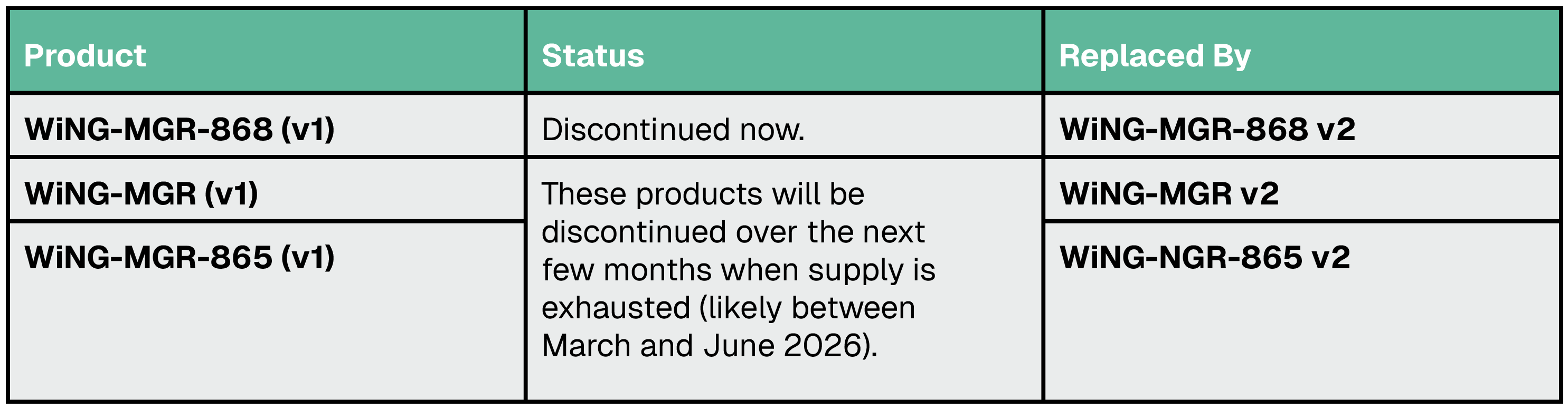 Parameter (RLE) Wing-Mgr v1 wireless gateways superseded by Wing-Mgr-v2